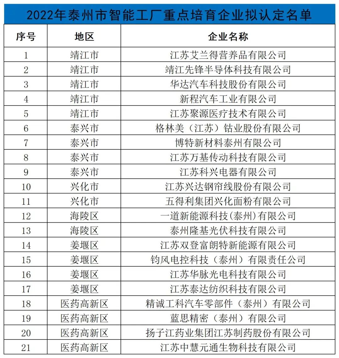 為進一步促進我市制造業(yè)加快智能化改造和數(shù)字化轉(zhuǎn)型步伐,實施智能制造示范工廠的梯度培育,我局下發(fā)了《關(guān)于開展2022年泰州市智能工廠重點培育企業(yè)申報工作的通知》(泰工信發(fā)〔2022〕82號)。經(jīng)企業(yè)申報、市(區(qū))推薦、形式審查、材料評審、現(xiàn)場核查、信用查詢等程序,擬對全市21家企業(yè)進行認(rèn)定,現(xiàn)予公示。
