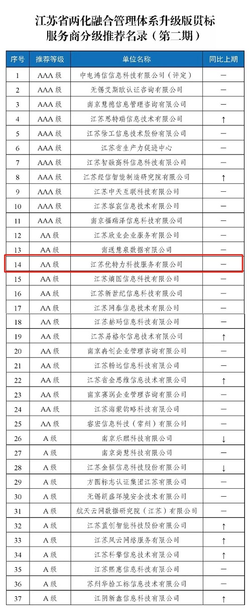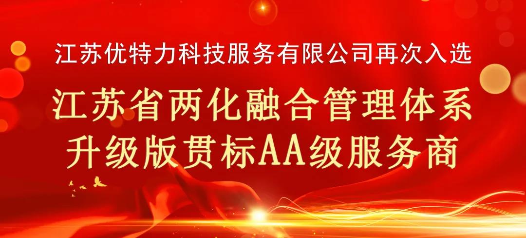 優特力科技再次入選江蘇省兩化融合管理體系升級版貫標AA級服務商!